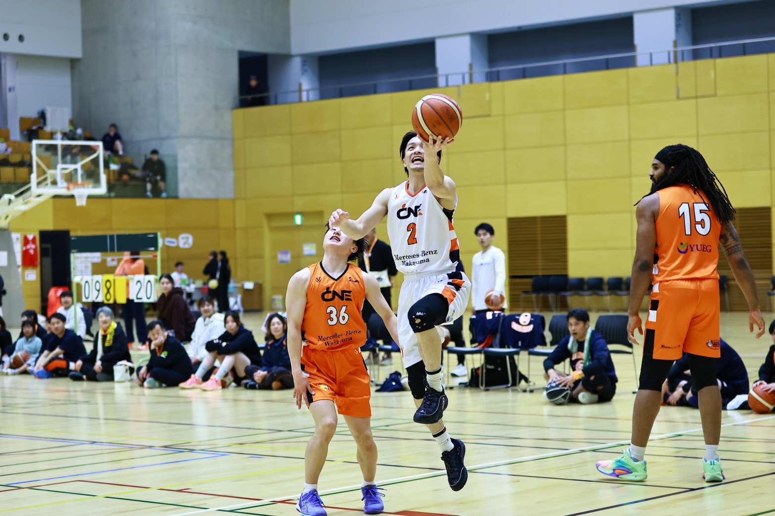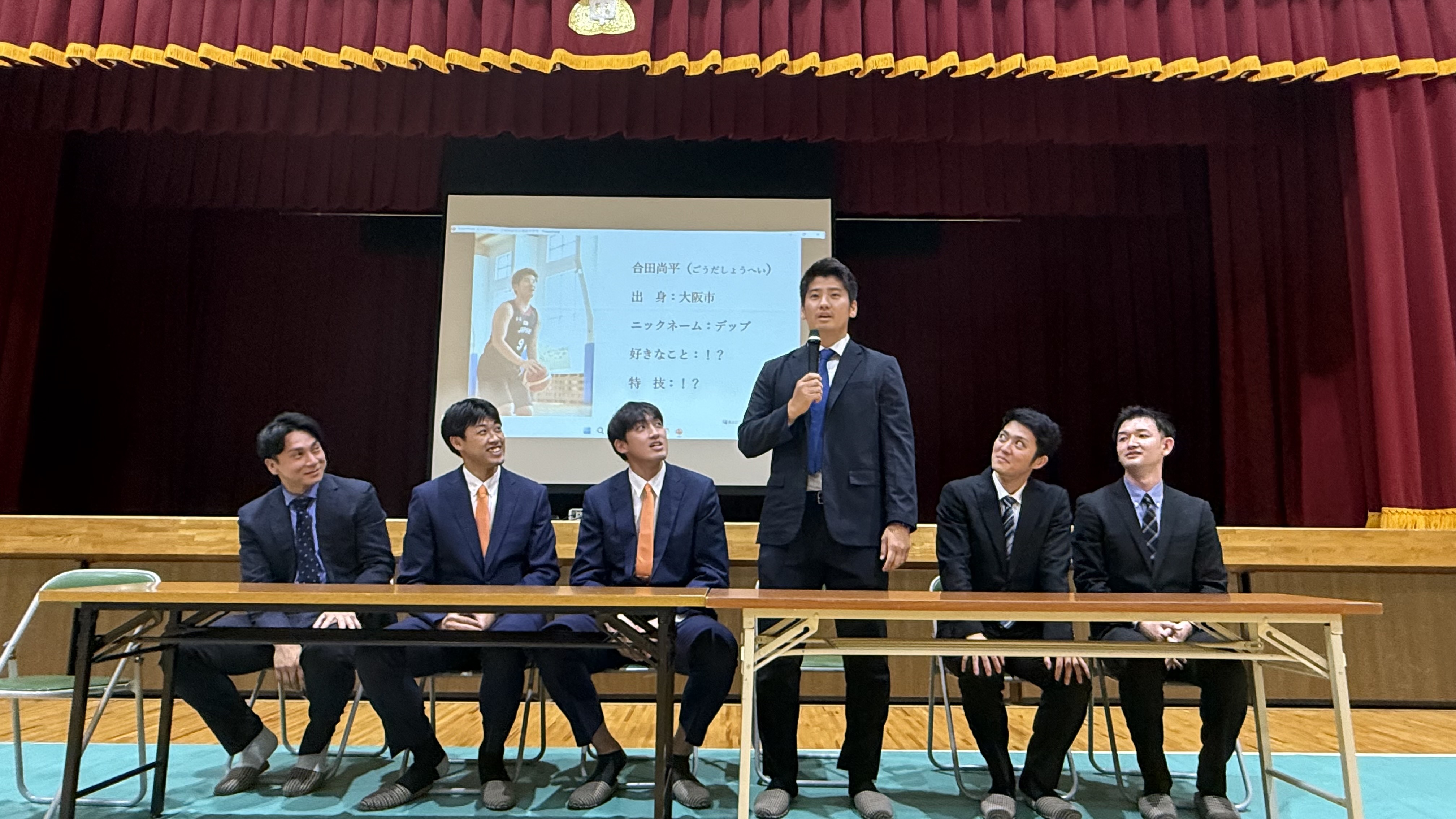 講演後に選手とのバスケ対決!