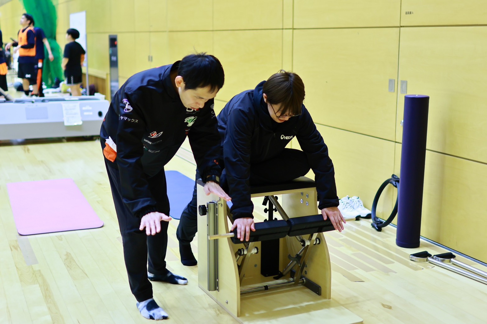 「その場で変わる前屈体験」選手たちも体験し、体の変化に驚いていました。