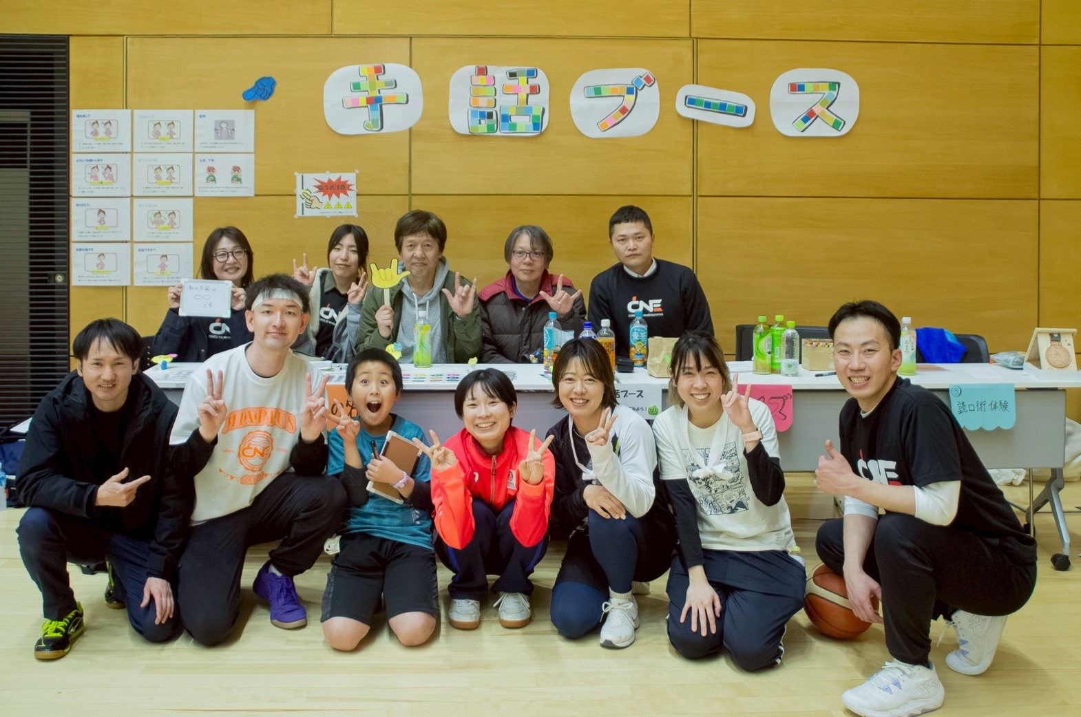 バスケ体験や交流試合、手話ブースなどで交流。