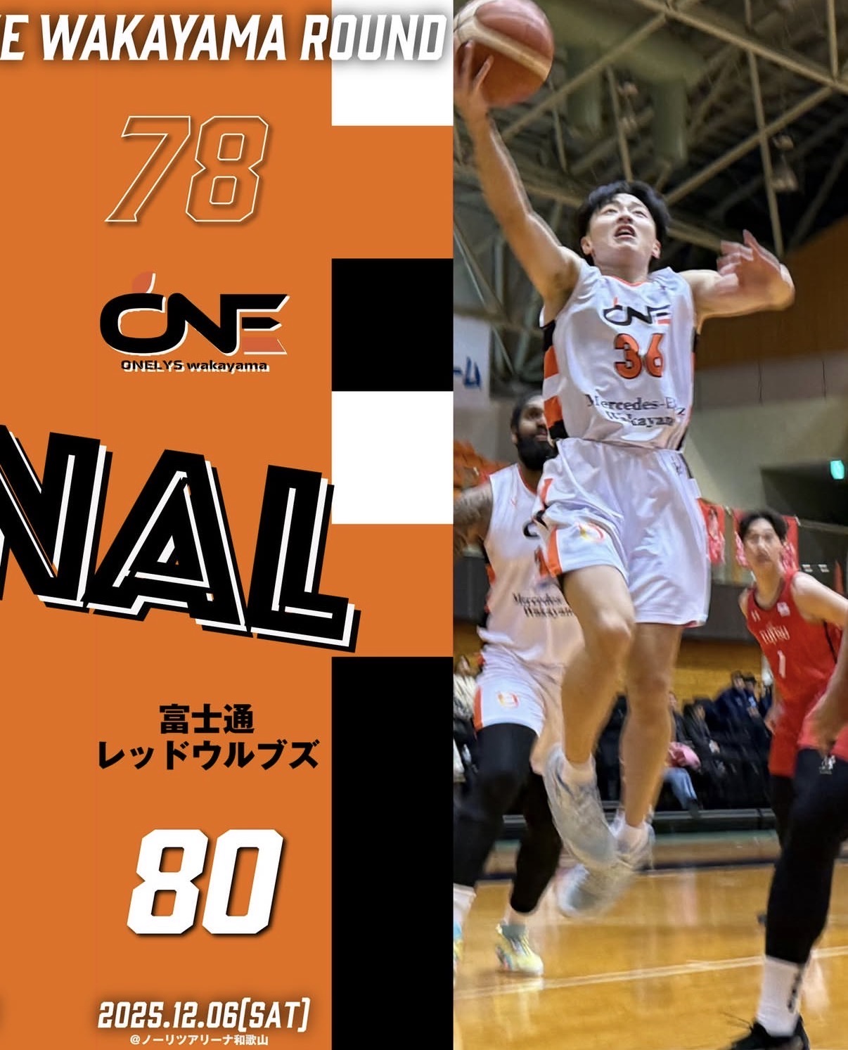 2025.12.6(SAT) SBL SB1 リーグ 和歌山HOME GAME vs 富士通レッドウルブズ 78-80(延長戦) 17点差を巻き返す猛攻から延長戦になりましたが、最終的には...
