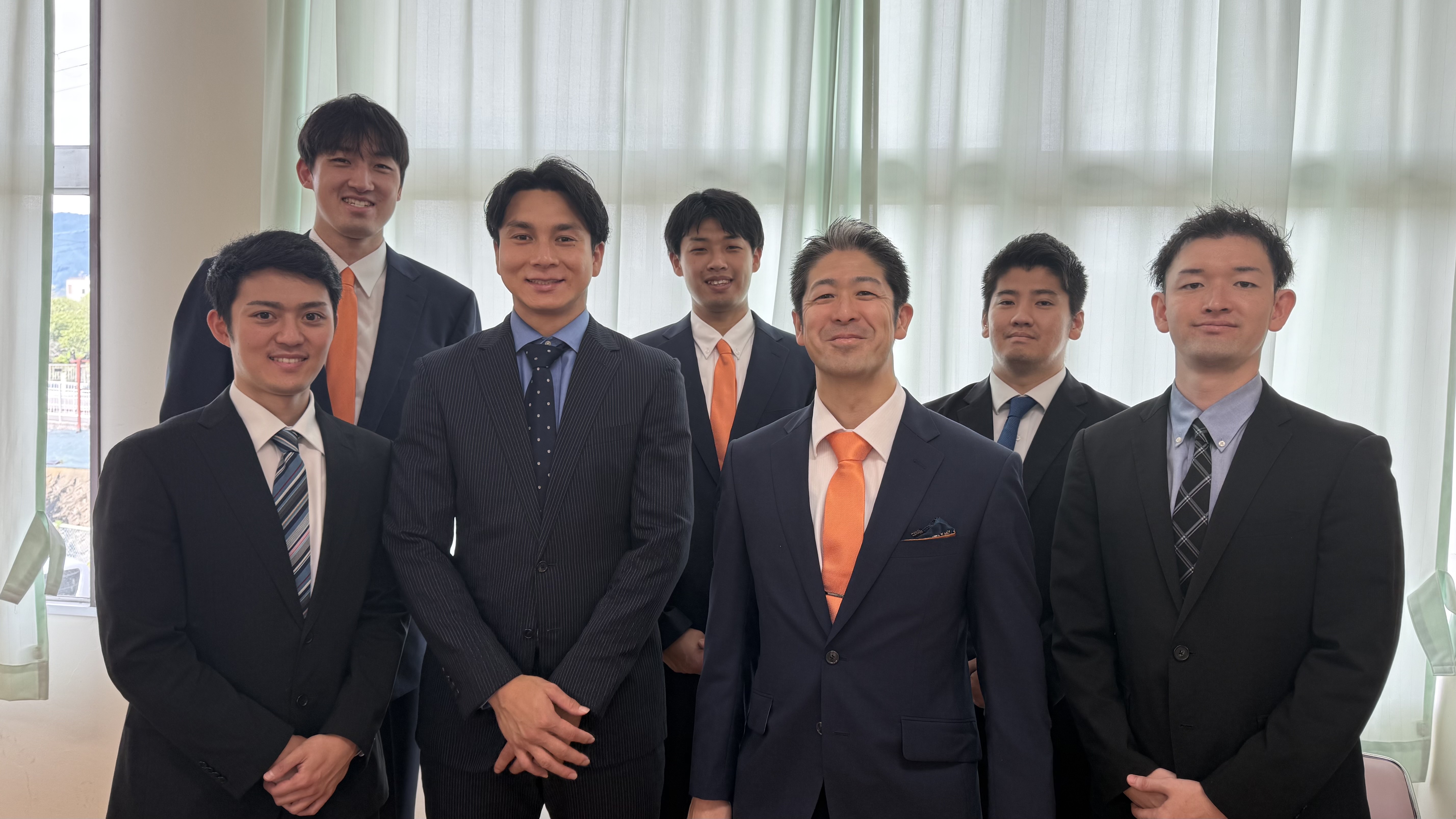 上田監督、 佐藤AC ,森井選手、西口(マネージャー)、谷(マネージャー)、井上(ONELYS osaka)に