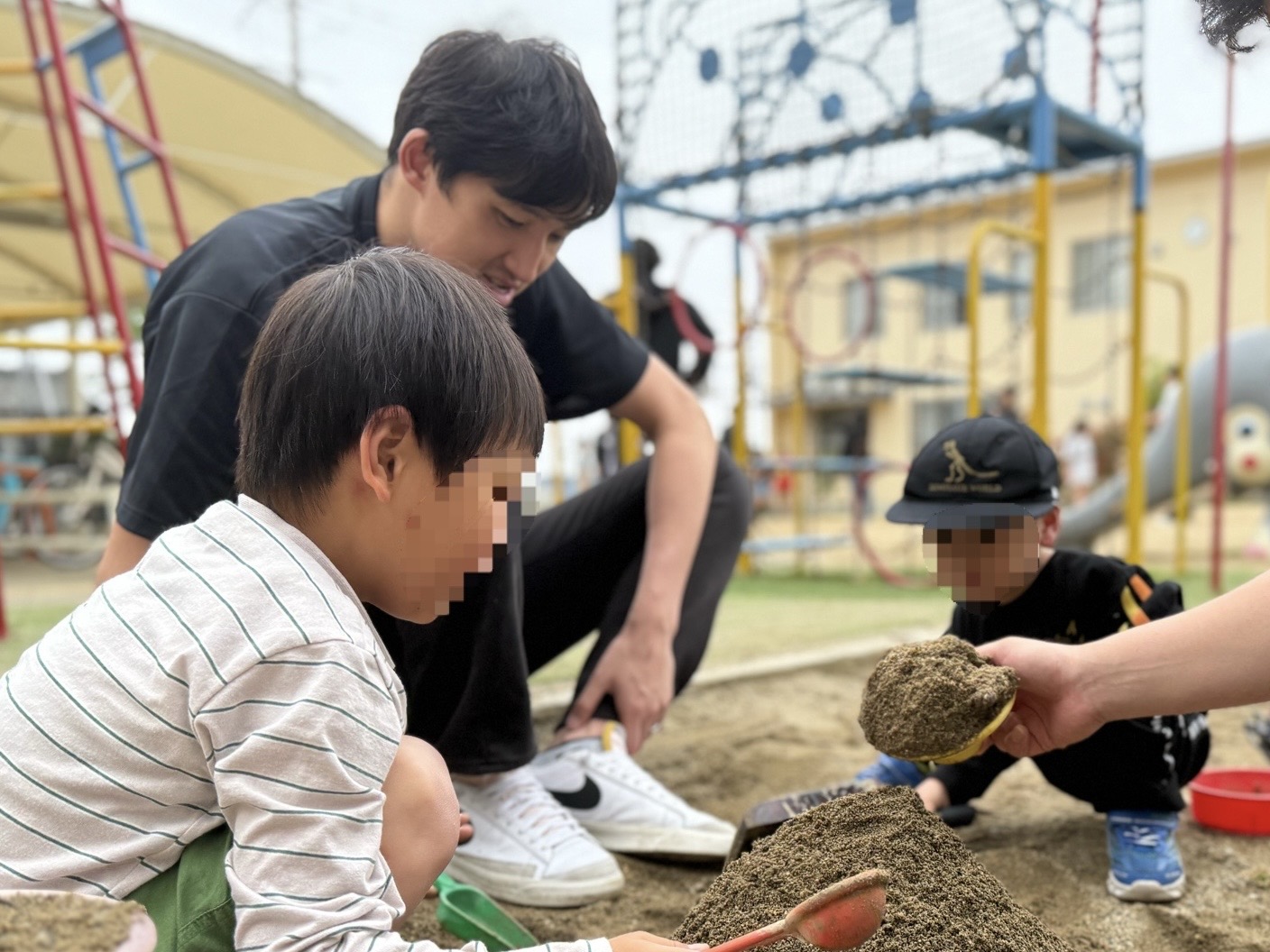 また、運動場で追いかけっこや、お話ししながら砂場遊びなど