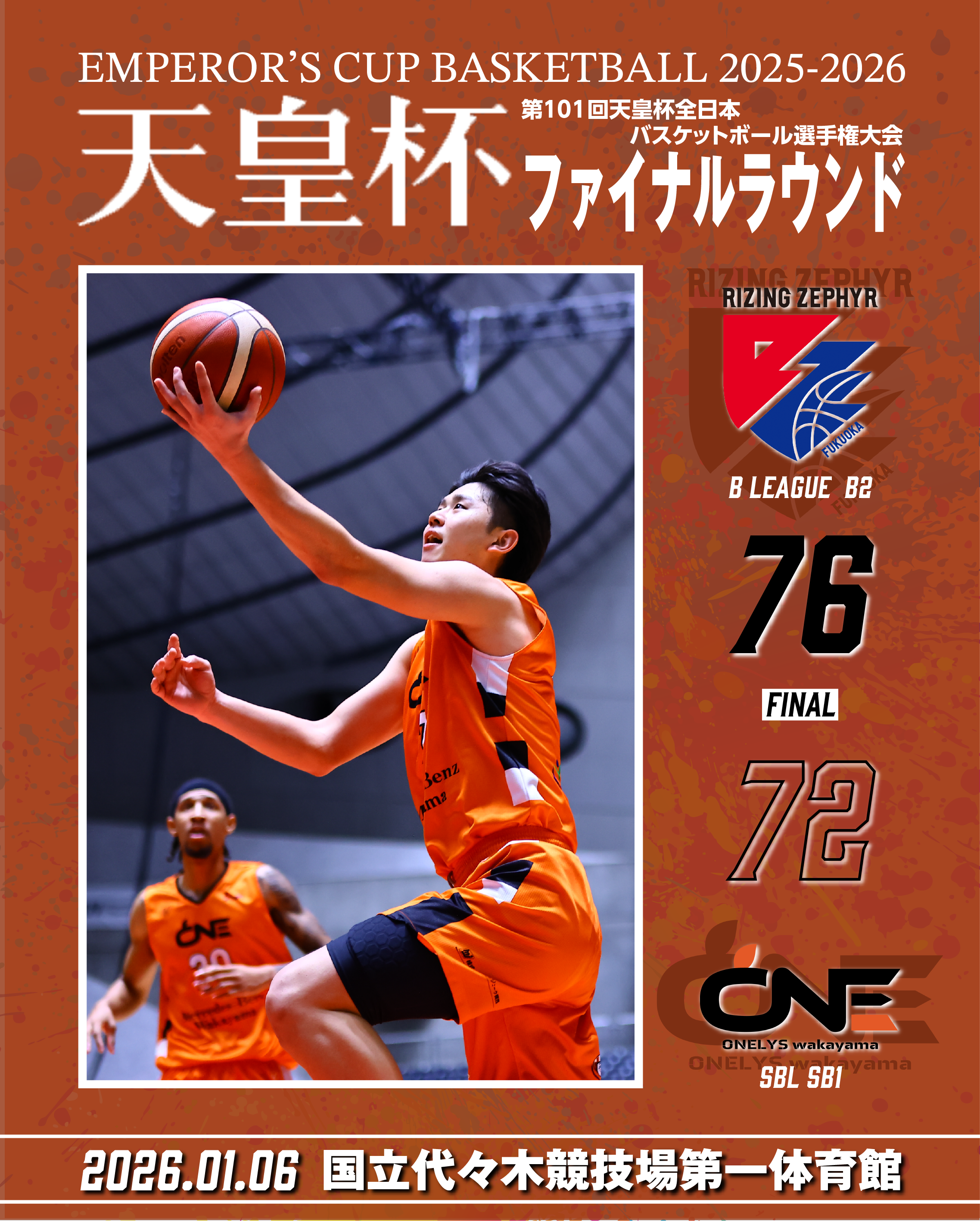 第101回天皇杯全日本バスケットボール選手権大会 ついにファイナルラウンドへ!! 2026年1月6日(火)東京都・国立代々木競技場第一体育館 TIPOFF 20:00 vs ライジングゼフ...