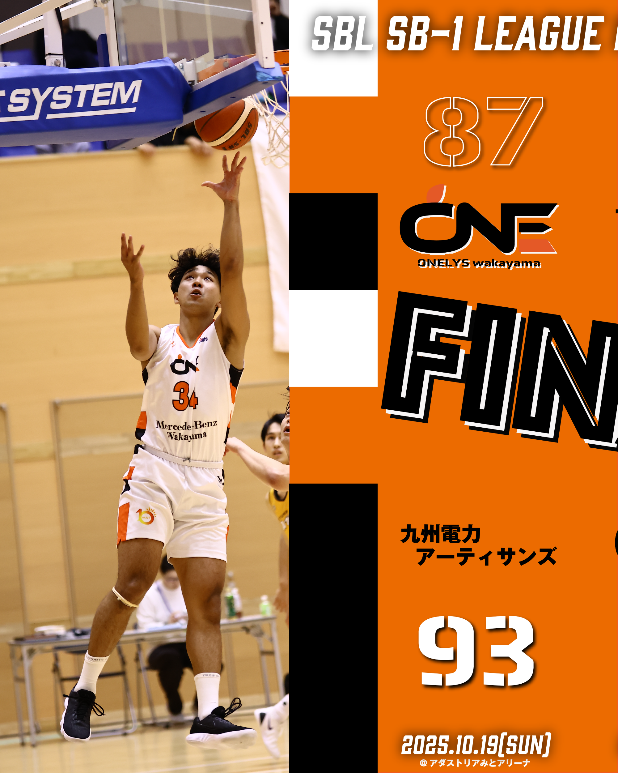 【日本社会人バスケットボールリーグ】近畿SB-2 リーグ 11月16日(土) @ノーリツアリーナ和歌山 vs 日新シール工業 Final score < ONELYS wakayama ...